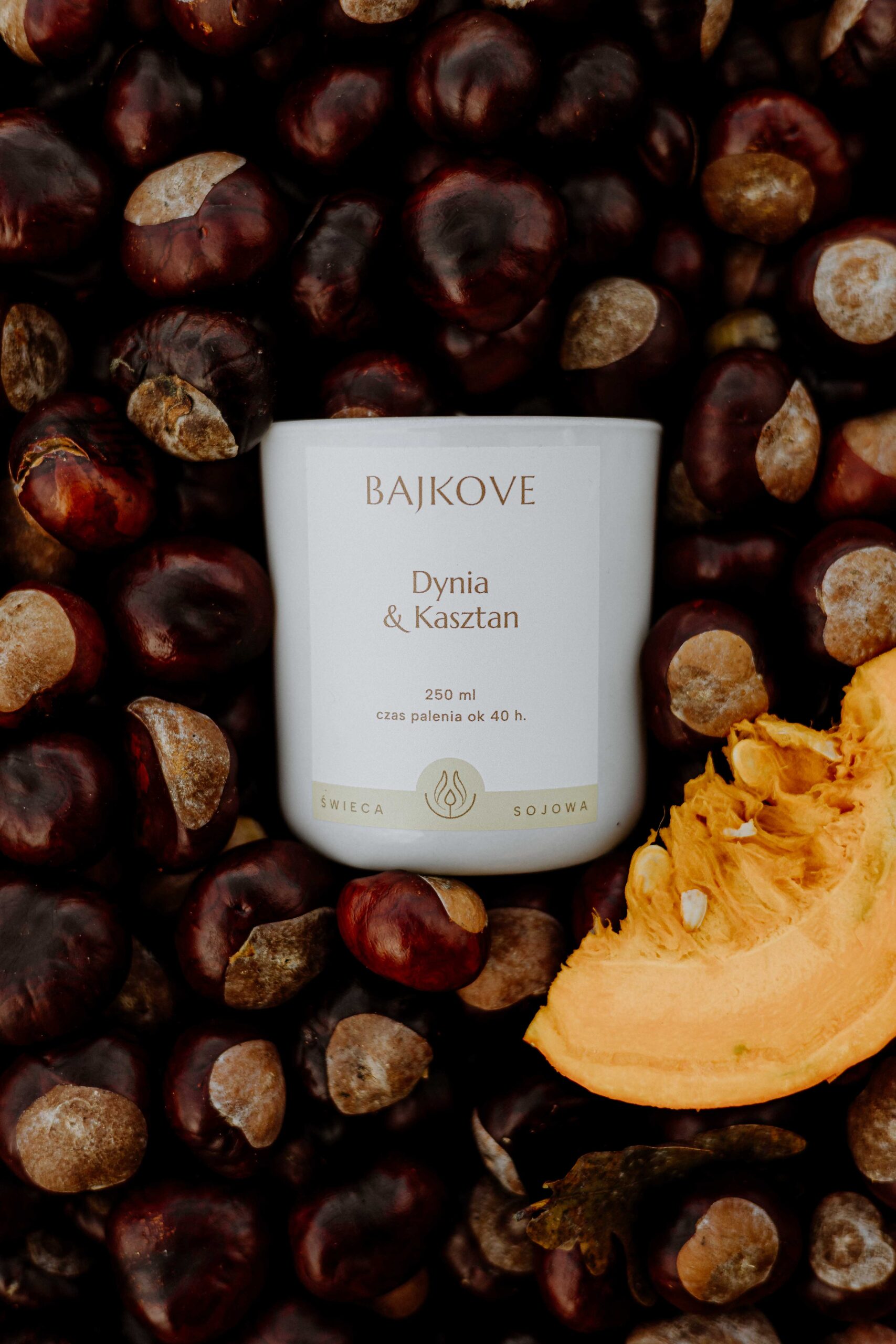 Zanurz się w ciepłej, jesiennej aurze dzięki wyjątkowemu zapachowi dyni i kasztana. To połączenie słodkiej , kremowej dyni z nutami prażonych kasztanów i delikatną waniliową bazą tworzą harmonijną kompozycję, która otula wnętrze przytulnością i spokojem.
