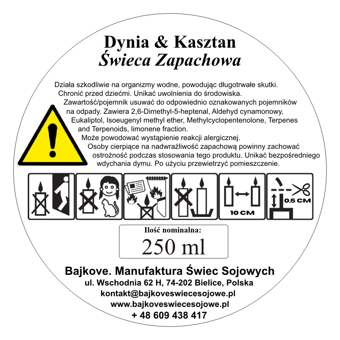 • skład: naturalny wosk sojowy, kompozycja zapachowa, bawełniany knot.