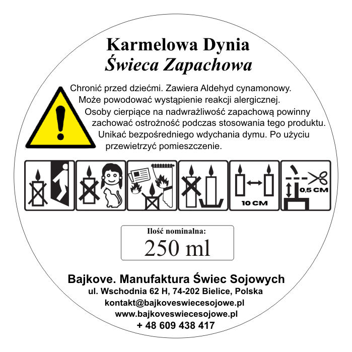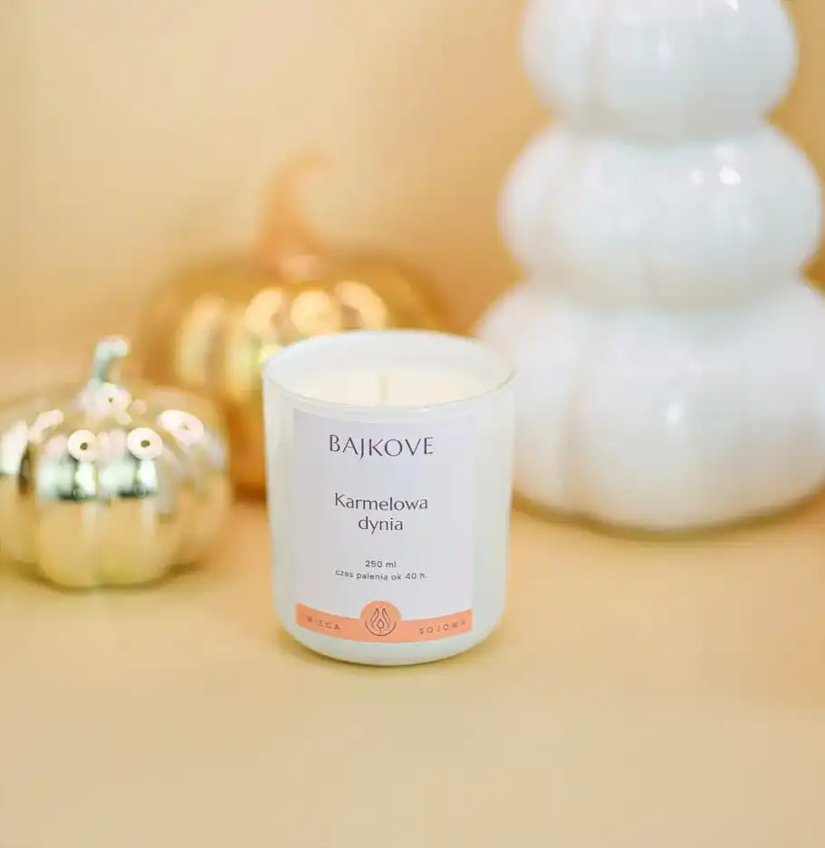 Otwórz drzwi do świata jesiennych przyjemności dzięki zapachowi Karmelowa Dynia. Ta niezwykle apetyczna kompozycja łączy w sobie korzenne i słodkie nuty, które otulają ciepłem i tworzą atmosferę domowego komfortu. W bukiecie zapachowym wyczujesz aromatyczne gwiazdki anyżu, aksamitny cukier klonowy i kremowy karmel, które przenikają się z aksamitną słodyczą dyni. Całość dopełnia delikatna wanilia i rozgrzewający imbir, nadając kompozycji głębi i charakteru. To idealna świeca na jesień i zimę – do chwil relaksu, spotkań przy herbacie i tworzenia przytulnego klimatu w domu. Karmelowa Dynia – słodycz, ciepło i magia jesieni.