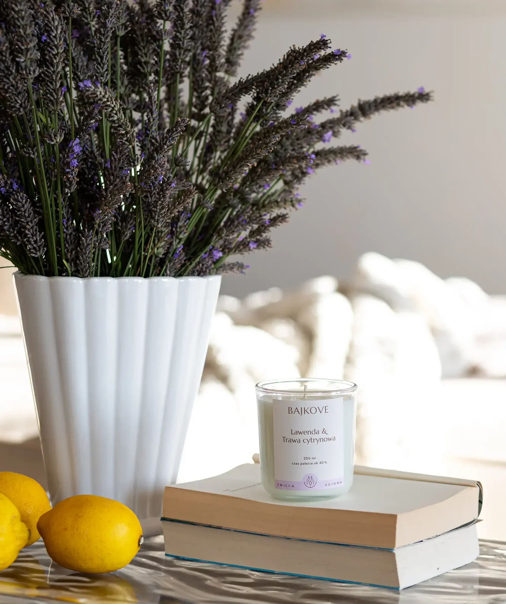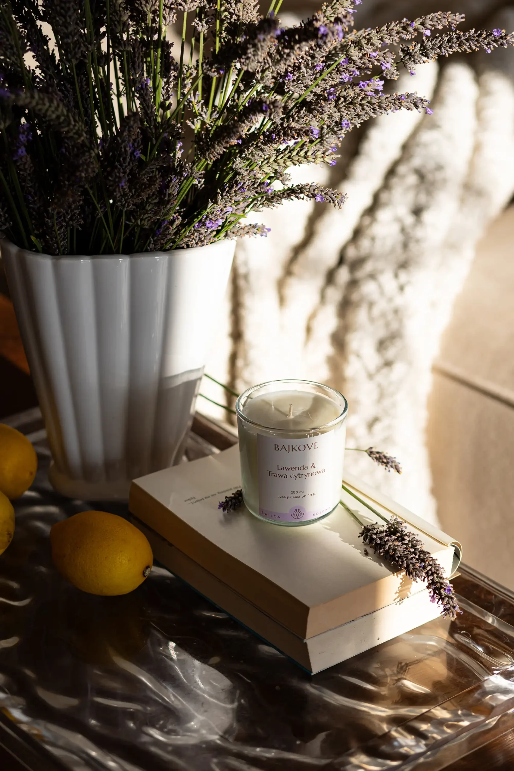 Połączenie relaksującej lawendy i orzeźwiającej trawy cytrynowej tworzy aromatyczną kompozycję, która koi zmysły i przywraca harmonię. Ta świeca sojowa idealnie sprawdzi się podczas wieczornego relaksu, medytacji czy domowego SPA. Lawenda uspokaja, a trawa cytrynowa dodaje świeżości i energii.
