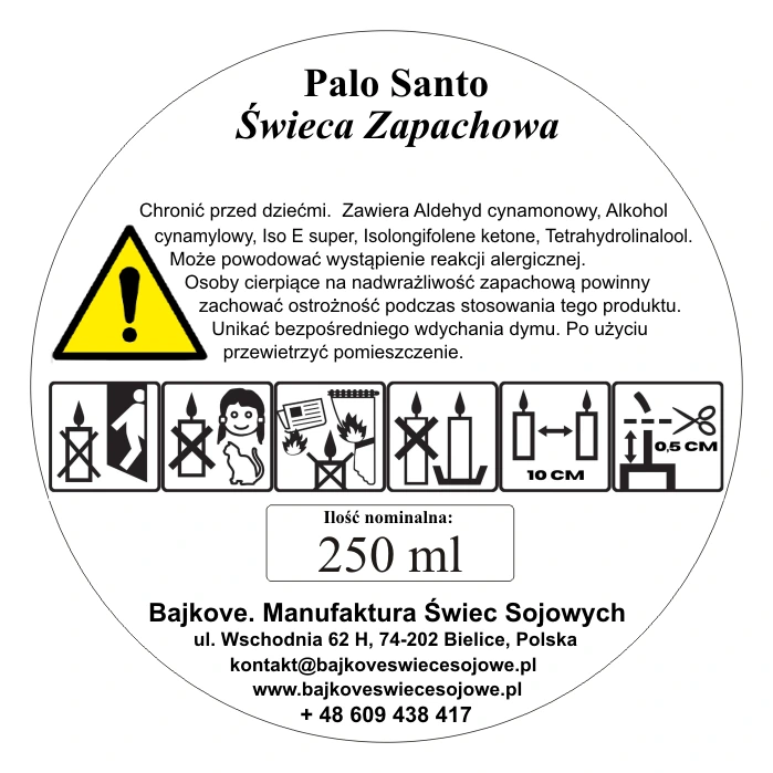 • skład: naturalny wosk sojowy, kompozycja zapachowa, bawełniany knot.