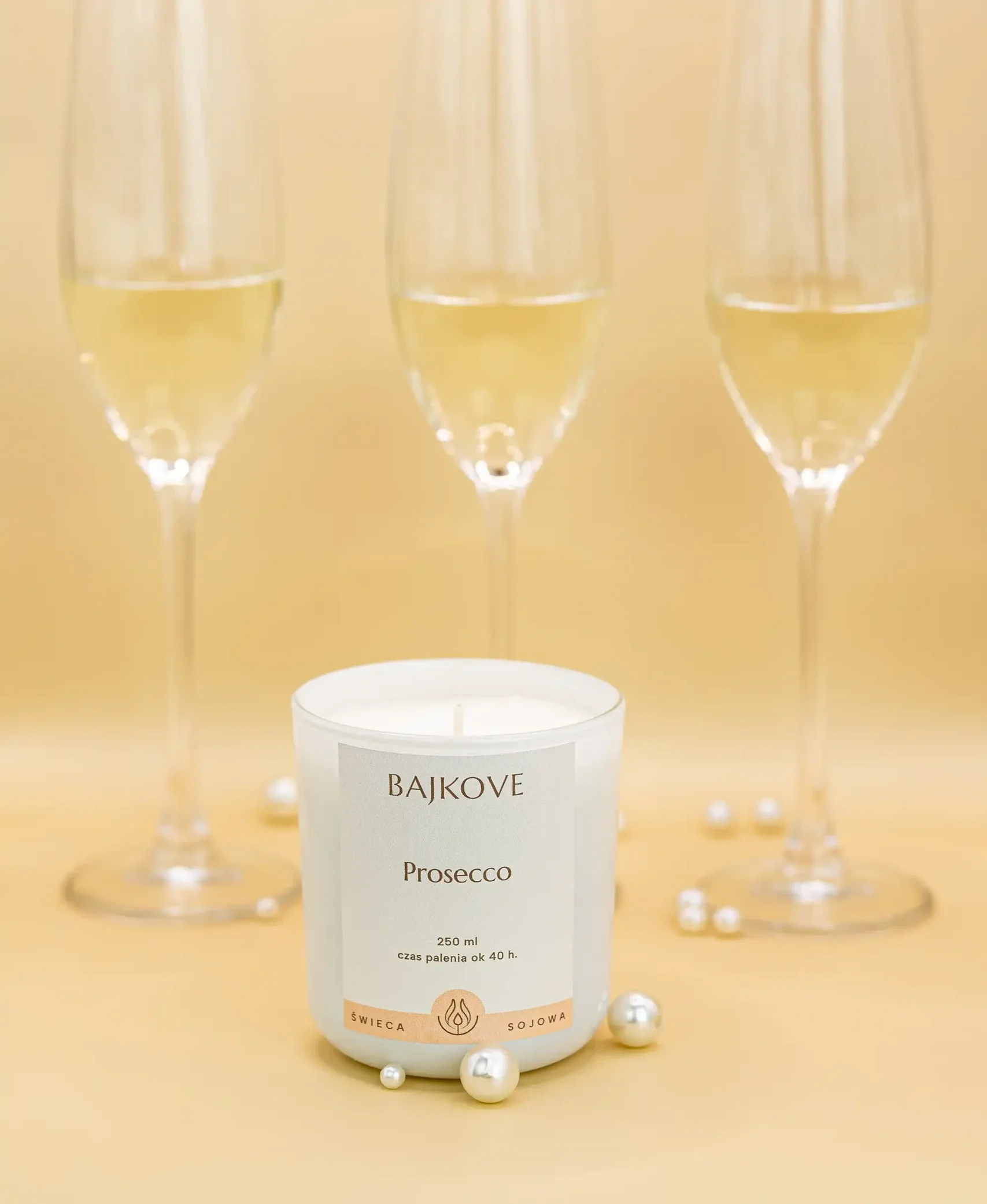 Rozkoszuj się eleganckim aromatem, który przeniesie Cię w klimat wyjątkowego toastu. Świeca sojowa o zapachu Prosecco to subtelne połączenie soczystych winogron, słodkiej białej nektarynki i delikatnej żywicy, tworzące kompozycję pełną świeżości i luksusu.